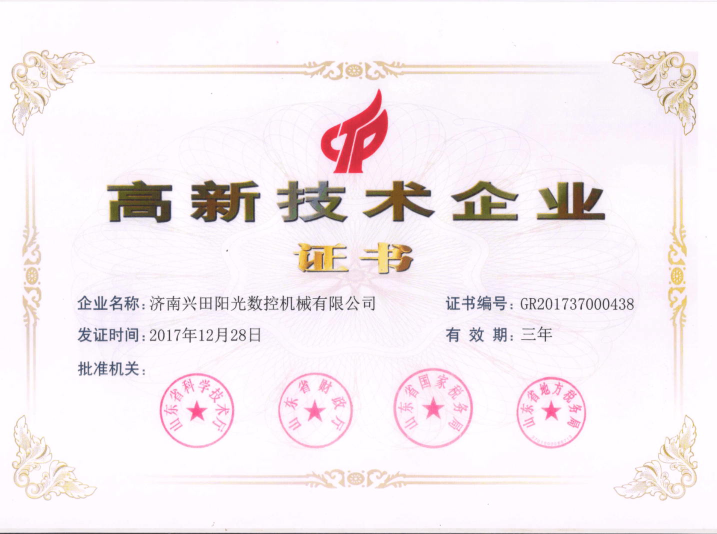 高新技術企業證書2017年度新認定