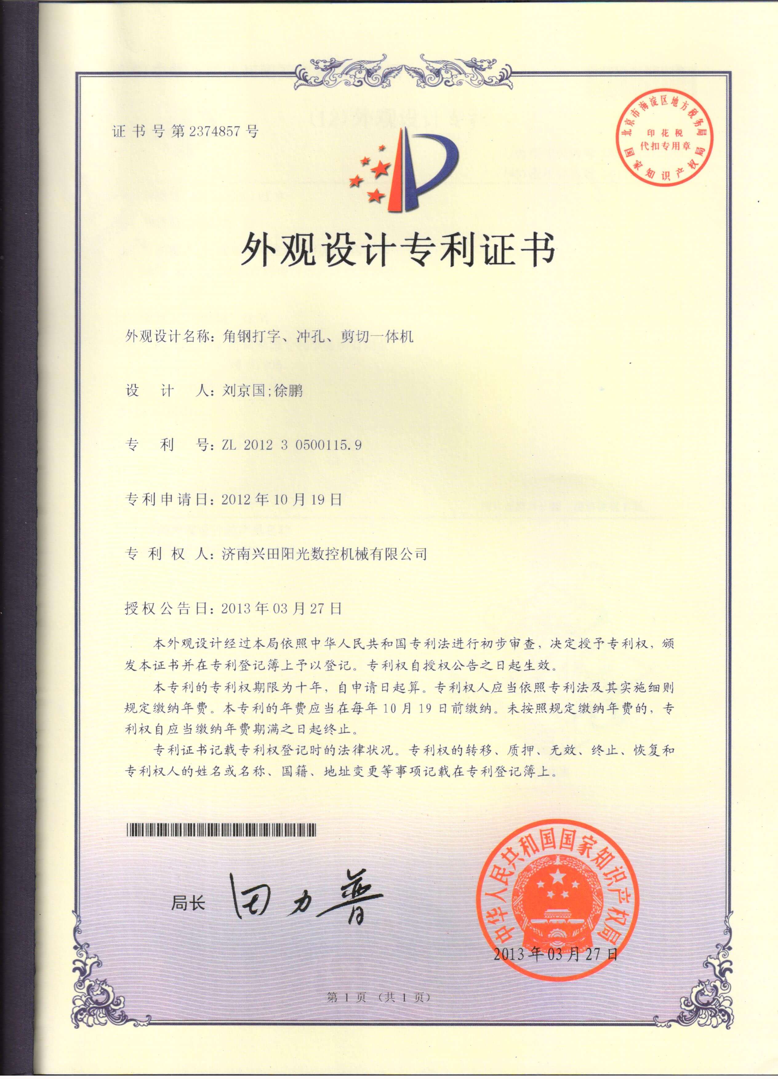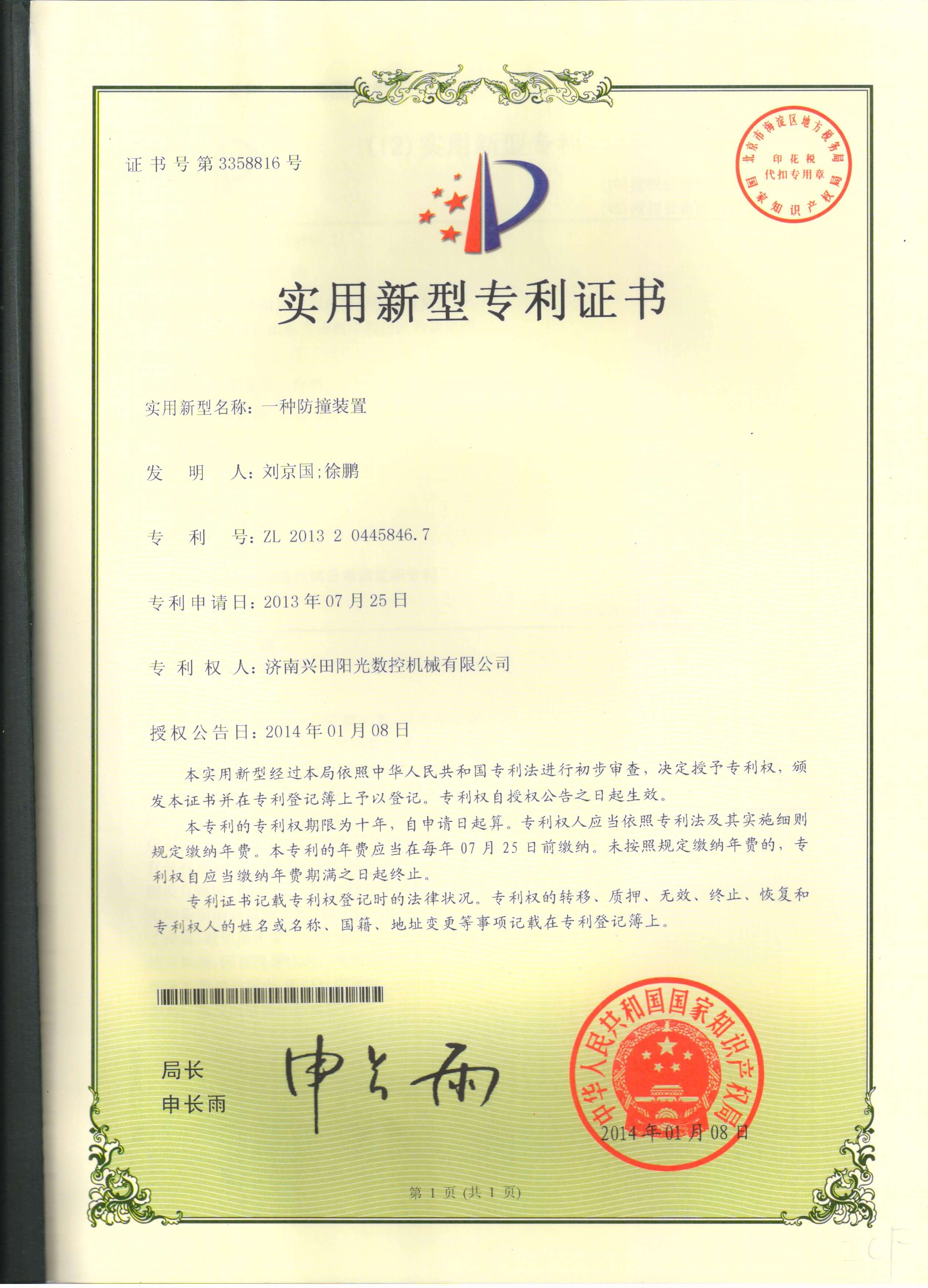 • 專利證書